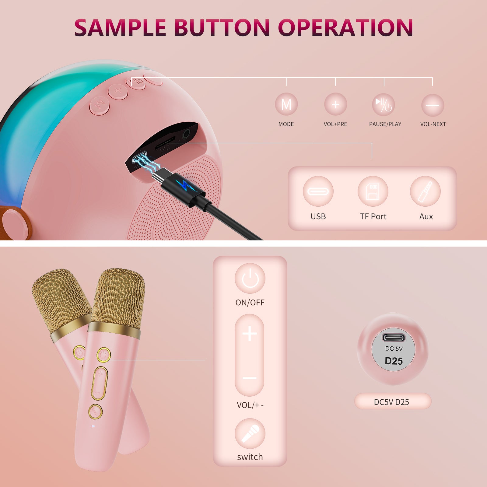 【Crystal-Clear Sound】: Comparing with traditional small karaoke speaker, this karaoke machine for girls built-in 2024 new chip and audio drivers, whether belting out power ballads or whispering soft lullabies, the richness and depth of the sound will suprise you.