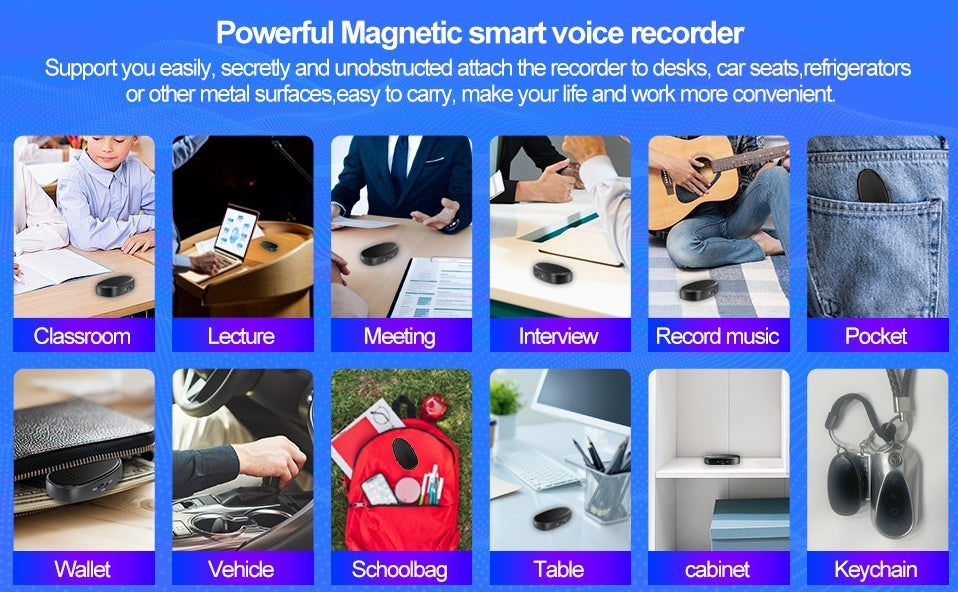 Never miss a word with the Mini Magnetic Voice Recorder – compact, powerful, and always ready to capture high-quality audio anytime, anywhere.